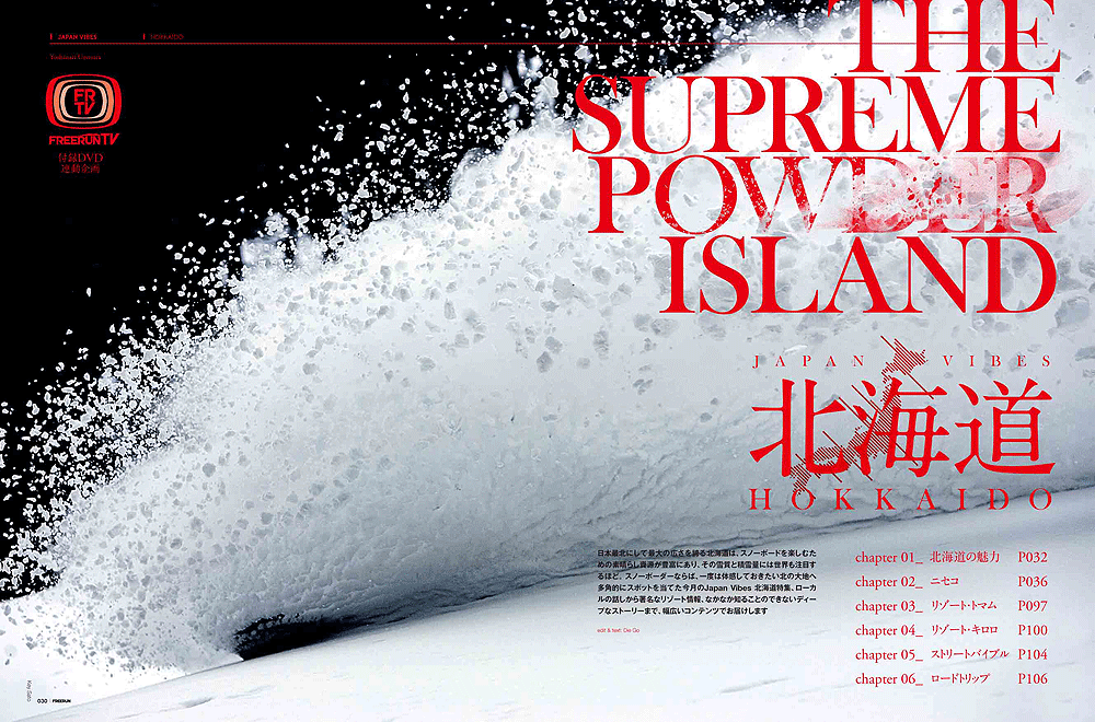 スノーボーダーならば一度は体感しておきたい北の大地へ多角的にスポットを当てた今月のJapan Vibes 北海道特集、ローカルの話から著名なリゾート情報、なかなか知ることのできないディープなストーリーまで。 |