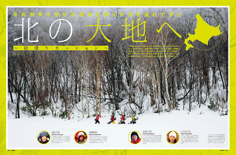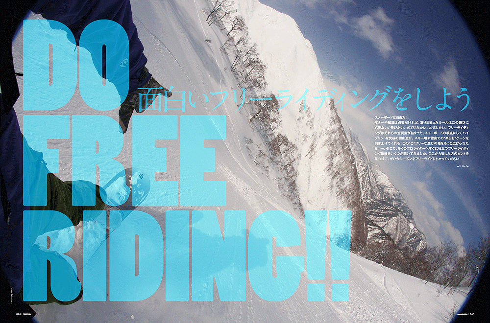 大雪パウダーを楽しむ雪山遊びの魅力が満載!! 北海道で白馬で群馬の山で、スノーボーディングの楽しみ方とは。そして究極の雪山遊びフリーライドの魅力に迫る。さらには2010年最新スノーシーンを最新フォトと共にお届け。