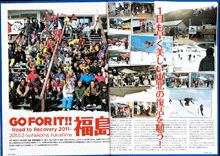 2011年5月、福島裏磐梯で行われた "GO FOR IT! 福島"。大震災で大きな被害を受けた東北復興イベントとして、笑顔の絶えない活気溢れるピースなイベントとなった。 |