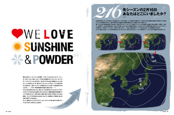 2011年2月19日。前日まで大雪だったが、まさにその日本列島は全国的に快晴となった。日本全国でスノーボーダーはどんな風に過ごしていたのか。そしてサンデーボーダーが最高の雪を当てるコツも特集。 |