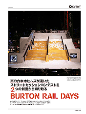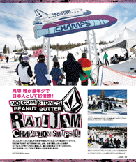 毎年、アメリカマンモスで開催しているオープン形式のレイルコンテスト。日本の大会を勝ち上がってチャンピオンシップに参加した鬼塚 雅がガールズで見事優勝を果たした。日本のスノーボードレベルの向上を期待させてくれるトリップ記事。 |