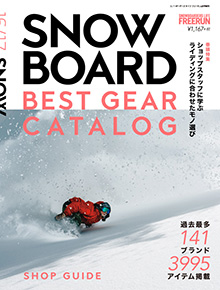 2016年7月13日発売 定価: 1260円(税込) 今年のフリーランカタログ号は、過去最多141ブランド掲載。アイテム総数3995点! 今シーズンのトレンドがすべてわかる特大ボリュームの1冊。 WHAT'S BEST BUY SNOWBOARD GEARと題した巻頭の特集ページでは、48店舗のSHOPスタッフに徹底取材、今シーズン気になるアイテムからイチオシのアイテムコーディネイトまでを紹介! アイテム購入の強い味方、全国92店舗のSHOP GUIDEも要チェックです。