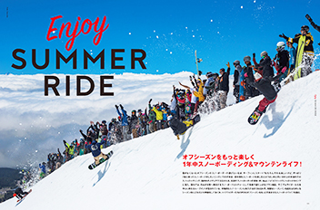 スケートにサーフィン、いやいやSUP。オフシーズンの遊びは様々だけど、やっぱり板に乗ってスノーボードしたい!そんなスノーボードに貪欲なスノーボーダー達の夏の動きを特集。真夏のスノーボーダーの聖地・Mt.HOODと国内ブラシ施設の今。そこでは新たなムーブメントが生まれている。 |