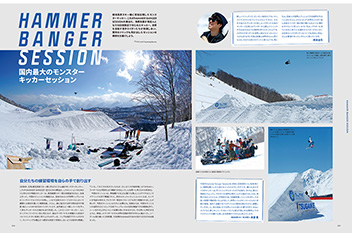 栂池高原スキー場に突如出現したモンスターキッカー。角野友基が発起人となり10日間限定で作られた理由は海外規模の練習環境を、新しいトリックを生み出せる場所を日本で、日本人の手で造りたかったから。世界を目指す若手ライダーが参加したこのセッションで、彼らの思惑通り驚愕のトリックが飛び出す。 |