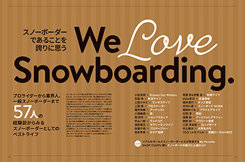 雪山を滑り降りるラインがそれぞれで異なるように、ライフスタイルは十人十色。それぞれの個性があり、スタイルの差がはっきりと現れる。では私たちスノーボーダーのライフスタイルには一体どんな生き様があるのだろうか。プロライダーから業界人、一般スノーボーダーまで57人の経験談からみるスノーボーダーとしてのベストライフとは。