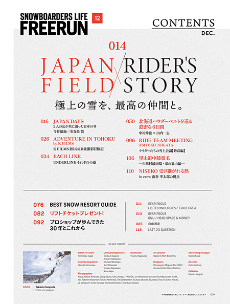コロナ禍の昨シーズン、いつものようなJAPOWを求めて来日する外国人達の姿はなく、特にバックカントリーフィールドは、まるで十数年前に戻ったかのような静けさに包まれていました。そんな日本の極上の雪を、最高の仲間と楽しんだ日本のスノーボーダーたちの記憶を、日本各地で撮影された写真とともにご紹介します。この冬がベストなシーズンになることを期待して。 |