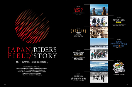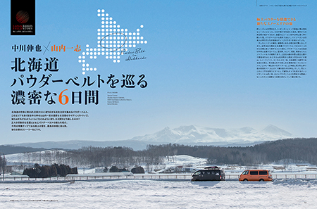 北海道の中央に南北約200キロに渡り広がる近年注目を集めるパウダーベルト。このエリアを良く知る中川伸也と山内一志の濃密な6日間のライディングトリップ。彼らはそれぞれのフィールドをどのように滑り、6日間をどう楽しむのか?彼らの旅のストーリーをどうぞ。 |